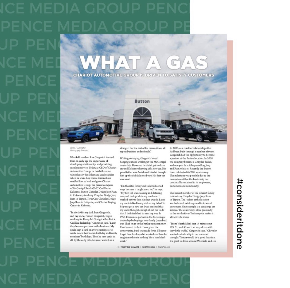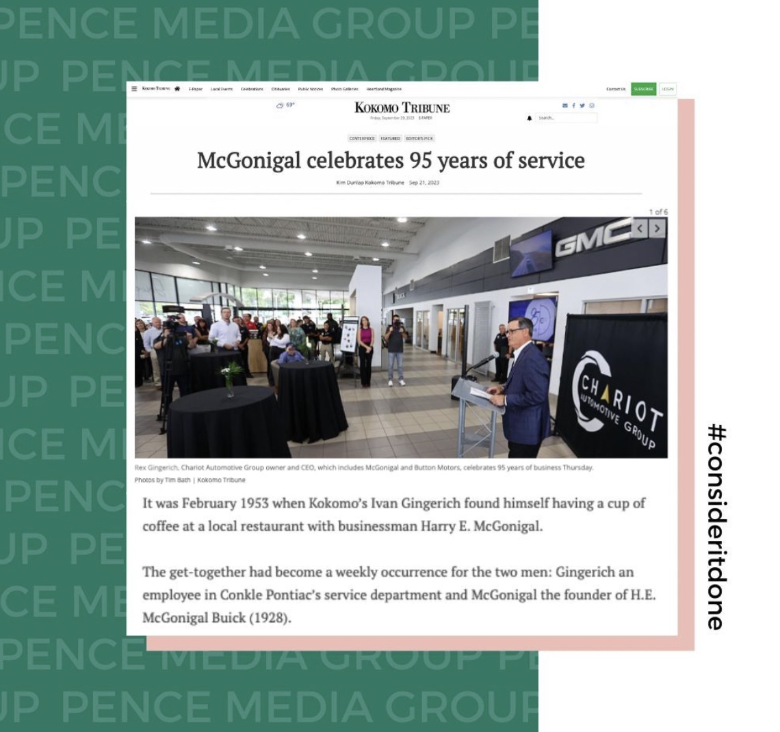 We’re honored to accompany our amazing clients in their successes. With expertise in branding, web, digital, content creation, and public relations, Pence Media Group would be honored to partner with your business to elevate your brand! Consider it done.