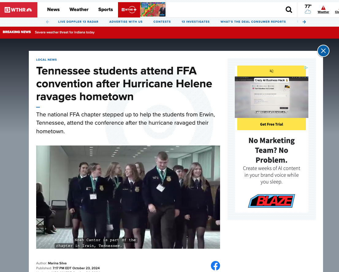 PMG combined national storytelling with hyperlocal outreach, strategic milestone campaigns, and on-site media coordination at major events like National FFA Week and the National FFA Convention & Expo. By pitching student success stories, workforce insights, and thought leadership, PMG broadened FFA’s presence beyond agriculture into business, education, and community media.