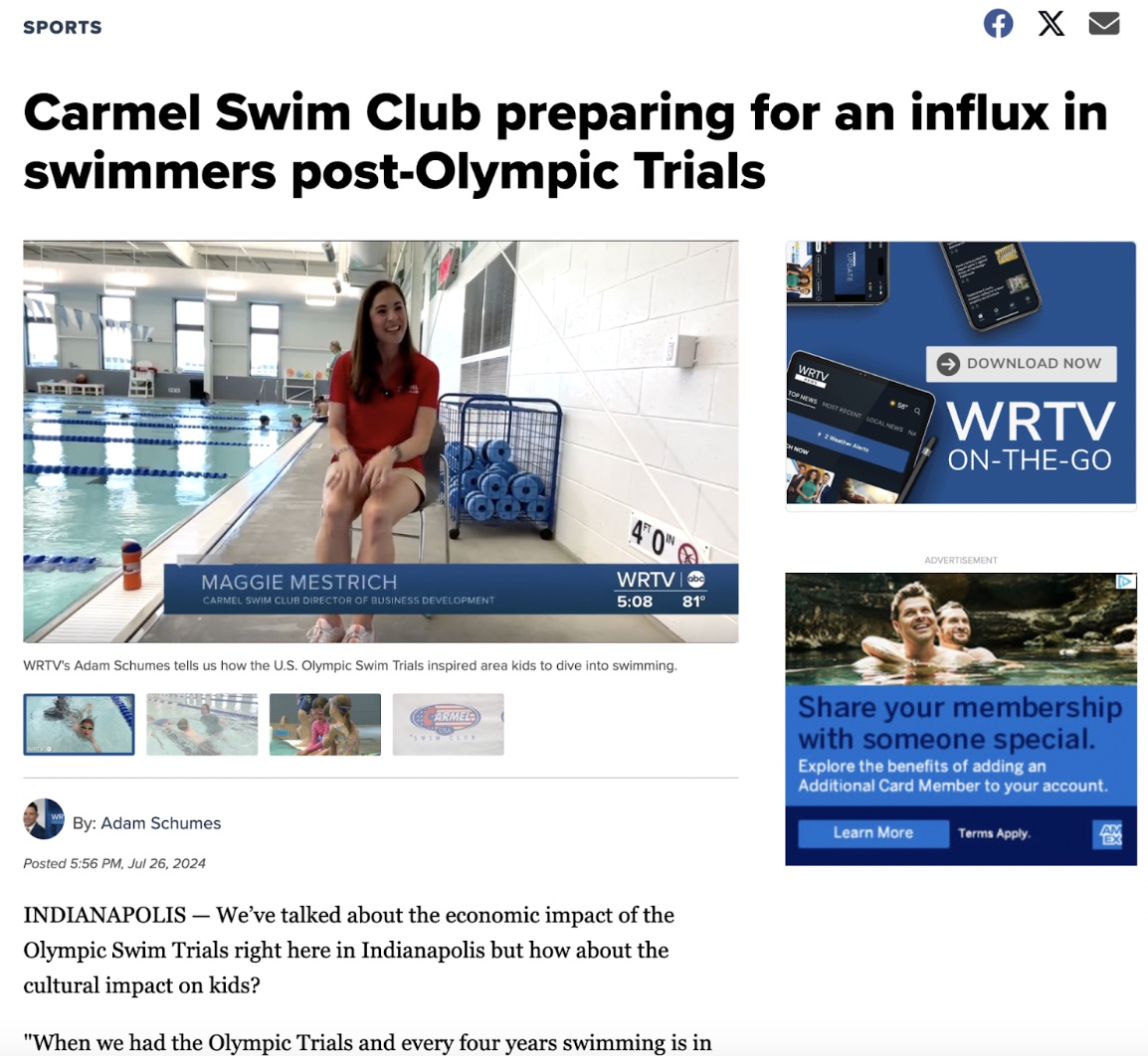For over 50 years, the Carmel Swim Club (CSC) name has been synonymous with excellence in the world of competitive swimming. Established in 1973, CSC has fostered generations of swimmers, from local club competitors to Olympic champions, shaping young athletes into well-rounded individuals in and out of the water. With an unparalleled track record—holding the national record for most consecutive high school state championships across all sports, 38 for girls and 24 for boys, Carmel Swim Club continues to dominate Indiana swimming and earn recognition as a USA Swimming Gold Medal Club of Excellence. At the helm is Head Coach and CEO Chris Plumb, who recently coached Team USA swimmers at the 2024 Paris Olympics. As a club with deep community roots and an international presence, CSC sought a Complete Digital Transformation and strategic public relations support to amplify its impact and highlight its athletes’ journey on the world stage.