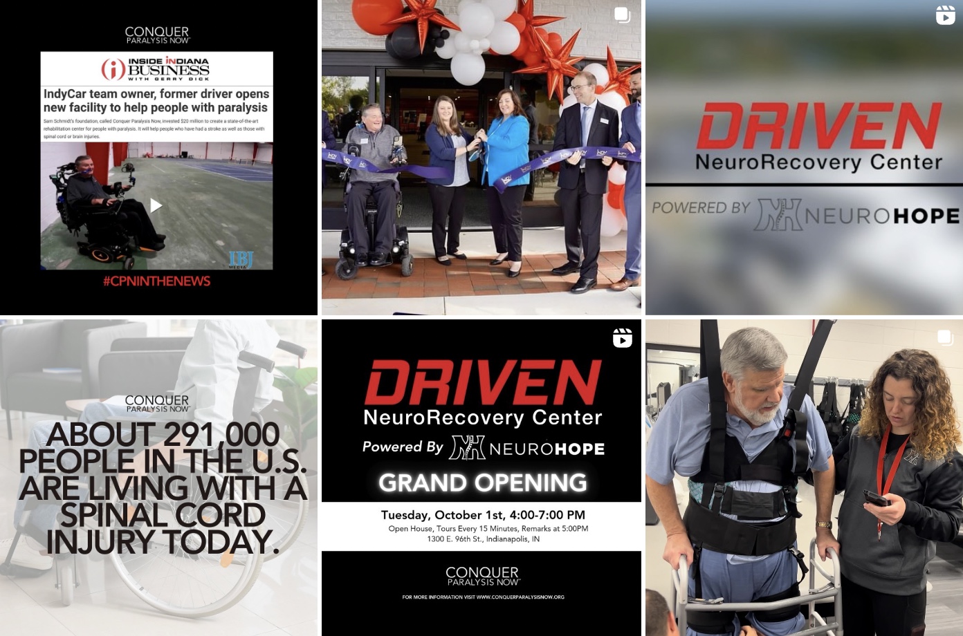 Founded by INDYCAR team owner and paralysis advocate Sam Schmidt, CPN’s mission is deeply personal—Schmidt, a quadriplegic since a 2000 INDYCAR accident, has devoted his life to finding a cure for paralysis and creating programs that promote rehabilitation, healing, and independence for individuals with neurological conditions. To ensure a seamless and impactful launch, CPN engaged PMG to coordinate and execute every aspect of the grand opening, including event planning and execution for two separate events on October 1, media relations, social media management, and video production. The overarching goal was to establish CPN and DRIVEN’s presence in Indianapolis, engage key stakeholders, and amplify awareness of the organization’s mission and life-changing offerings.