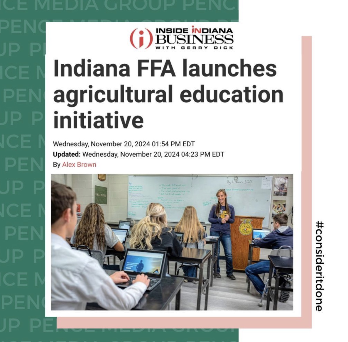 National FFA engaged Pence Media Group (PMG) to execute on the marketing and communications component of a multi-year, $3 million grant from the Lilly Endowment, Inc., to grow agricultural education and FFA in Indiana. The grant was given to National FFA, in partnership with Indiana FFA, to increase awareness among students, parents and caregivers, teachers, and administrators across the state about what agricultural education and FFA are and the benefits they provide, with a specific focus on recruiting and retaining students from underrepresented and marginalized populations.