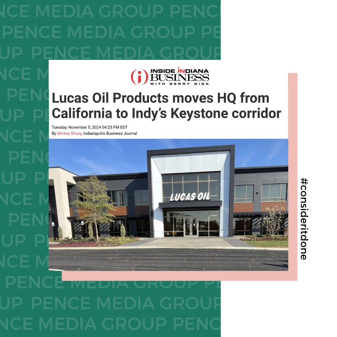Lucas Oil Products engaged Pence Media Group (PMG) to coordinate, execute and support the grand opening of its new headquarters in Indianapolis. PMG provided consultative services to support public relations, media relations, guest list management, video production, asset creation + social media support related to the grand opening event to bolster public awareness and increase brand engagement.