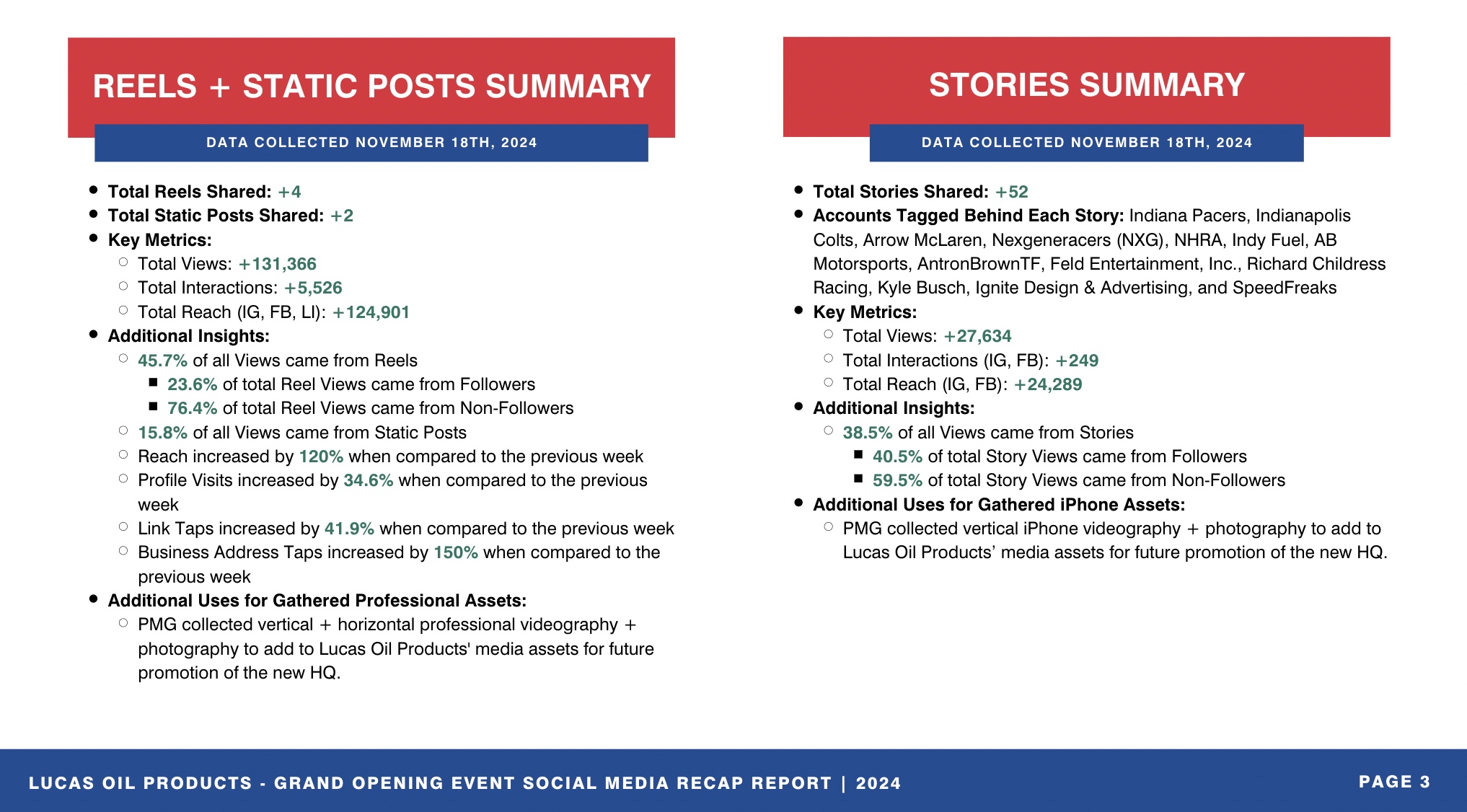 The project’s mission was to firmly establish Lucas Oil Products as a company committed to problem-solving and innovation for not only a number of industries, but also for the everyday driver. We also showcased how the move of their global HQ to Indianapolis was a strategic step forward for the future of the company and its culture. PMG engaged key stakeholders to showcase the Lucas Oil Products brand as well as their commitment to community partnerships.