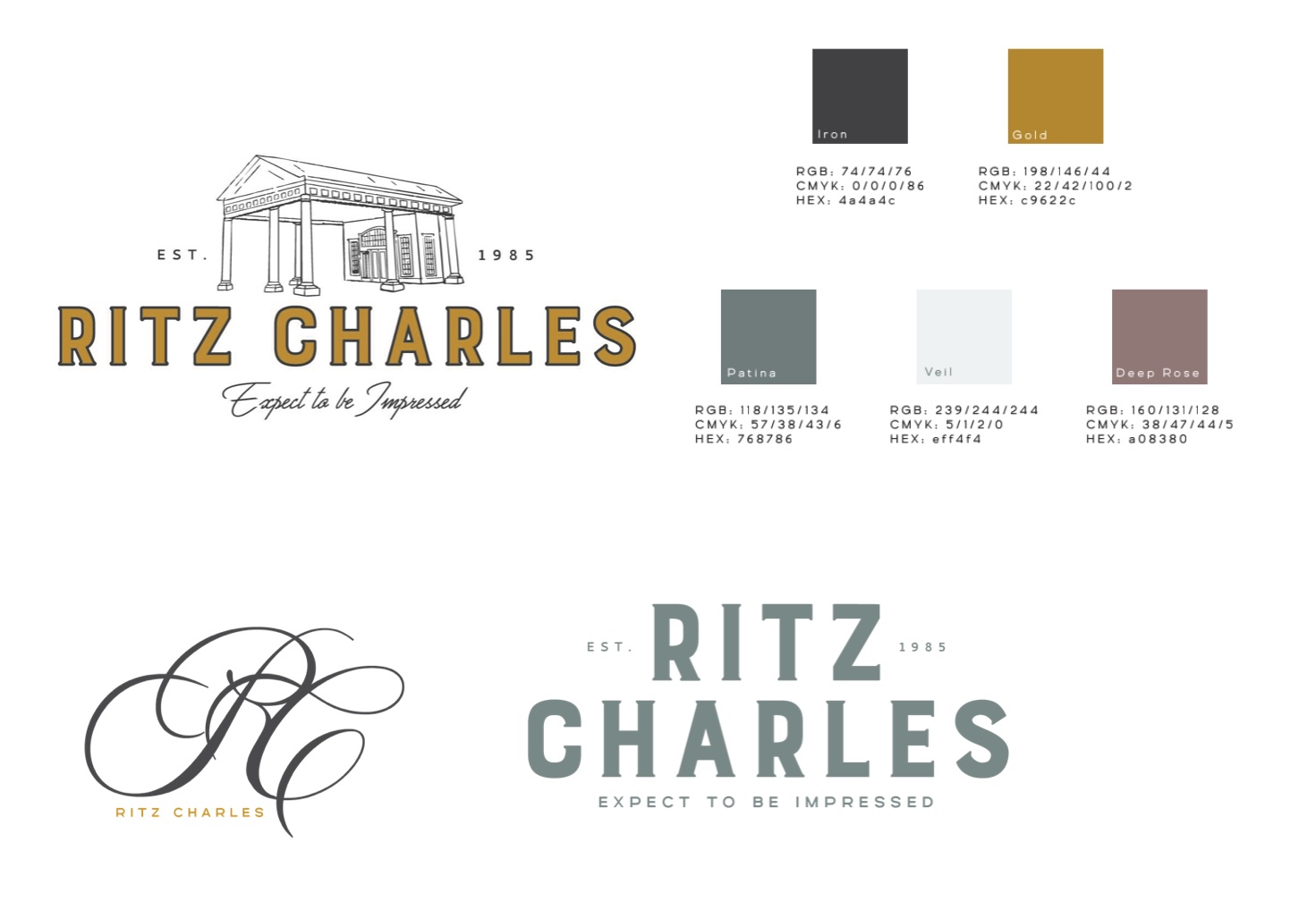 The updated logo, new font pairings, and expanded color palette were combined with supporting design elements and a curated visual mood board into a visual brand guide. This guide equips the Ritz Charles team with a clear framework to maintain a polished, cohesive look and feel as the brand continues to evolve.